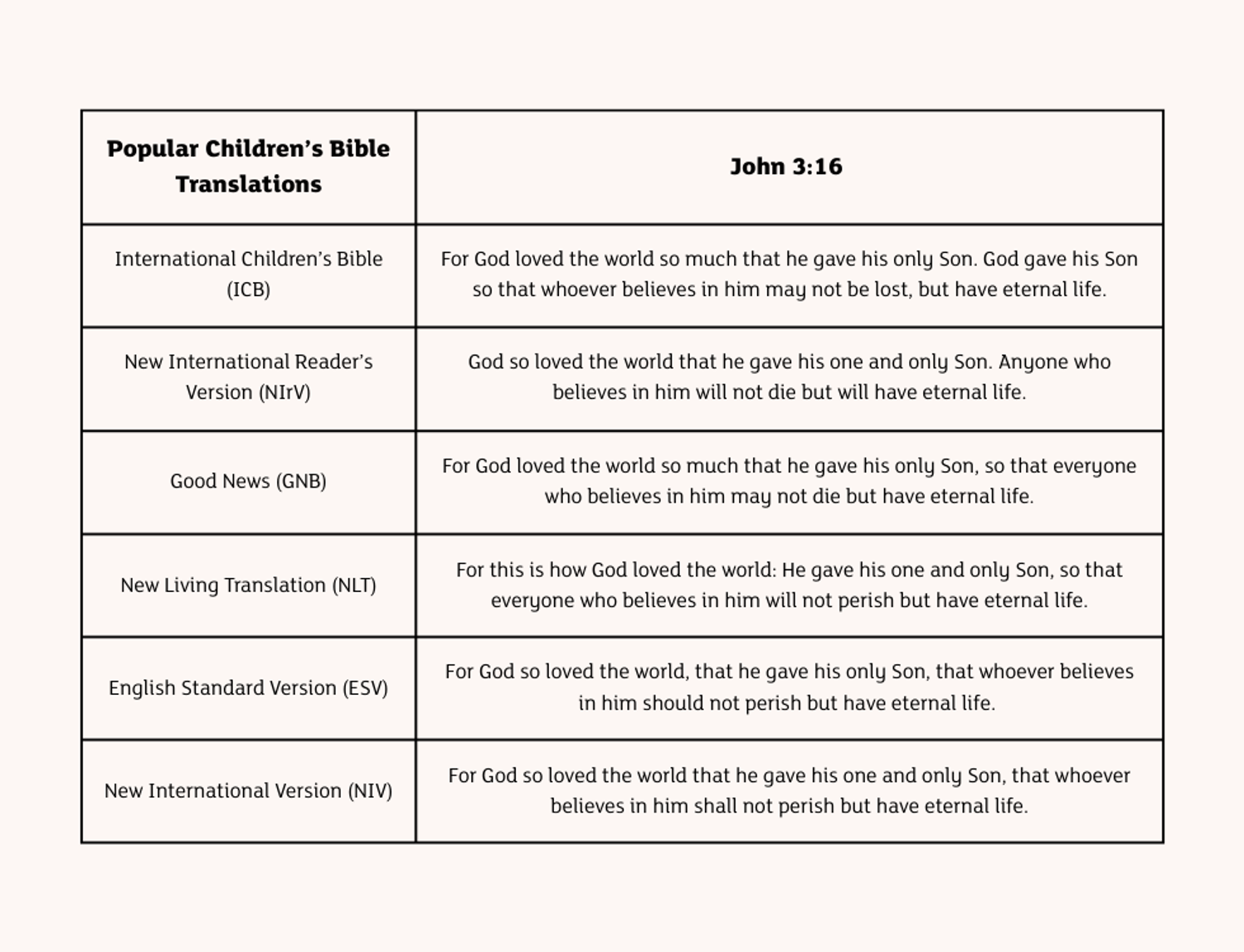 See how the Bible translations compare at a glance: