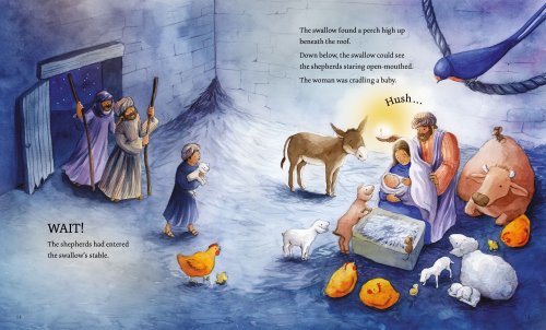 A swallow flits from here to there seeing the events of the Christmas story unfold.